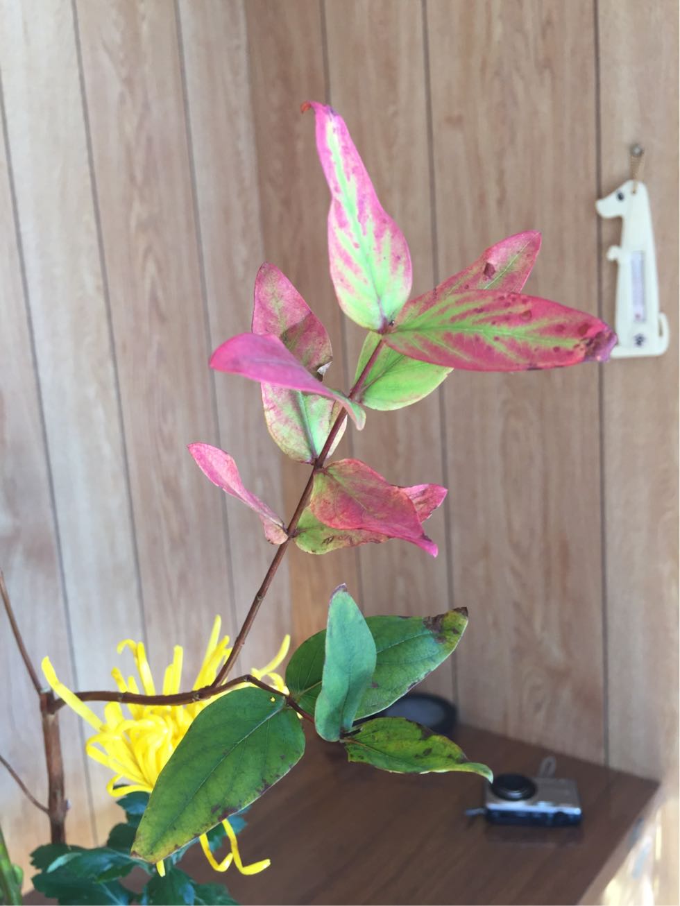 柳、糸菊、ヒペリカムの三種生けです。