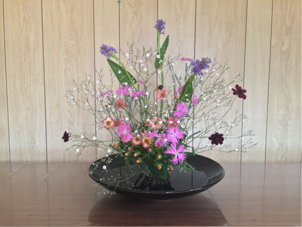 グラジオラス、ミニバラ、ナツオオバイの新風体です。