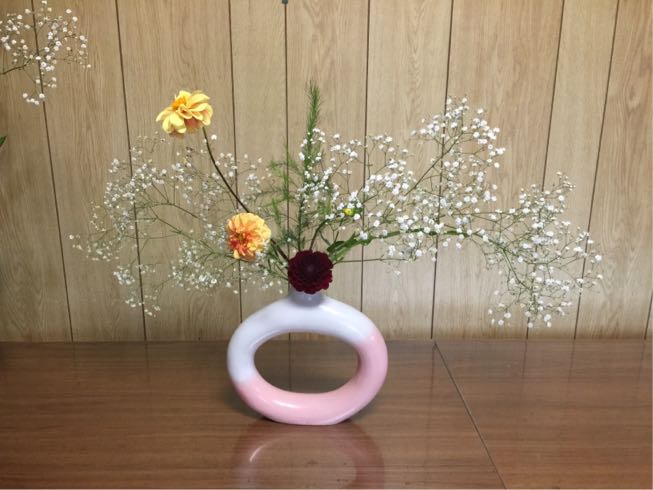 フトイ、キズ(ヒメナツハゼ)、浜撫子の三種生けです。
