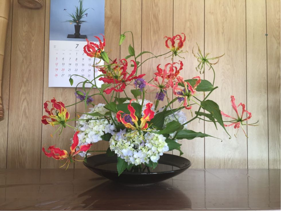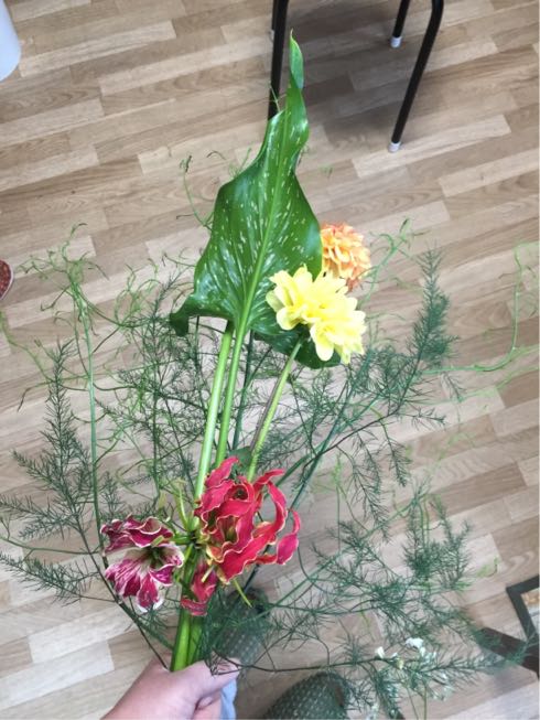 グロリオーサ、ダリア、アスパラなどの自由花。