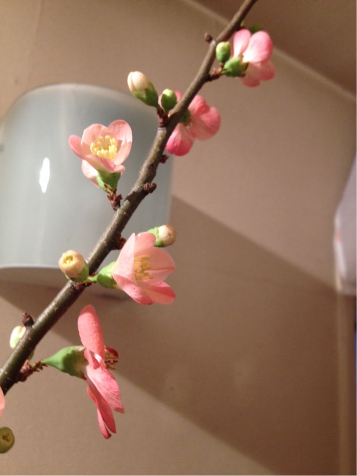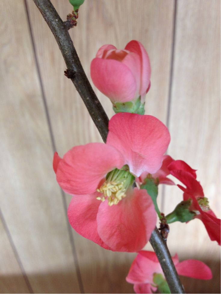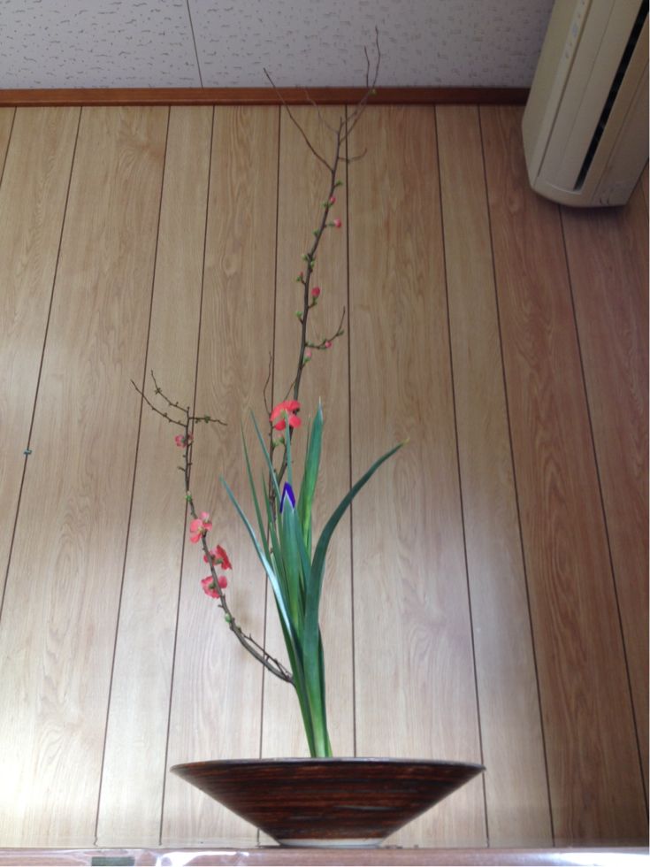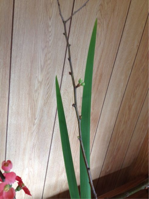 ボケ、アイリス、オクロレウカの三種生けです。