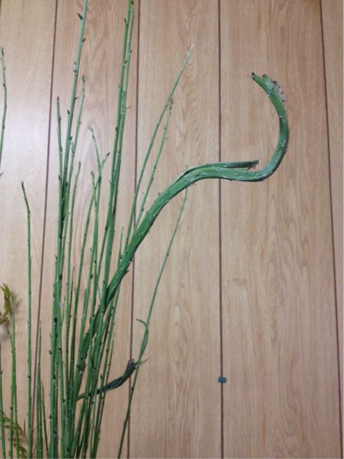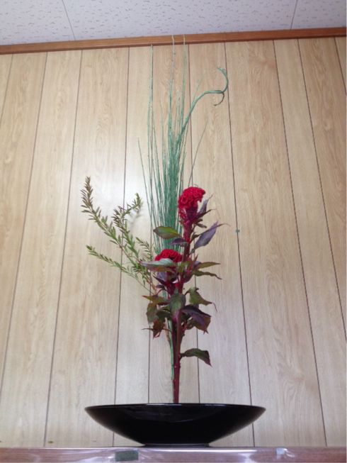 石化エニシダ、雪柳、鶏頭の三種生けでした。