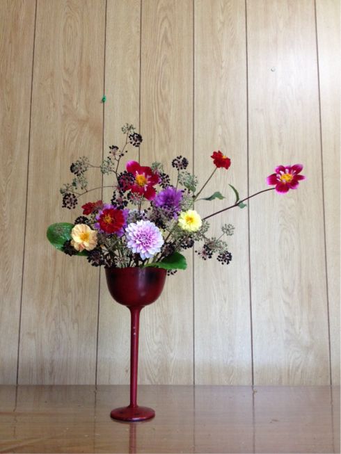 ウド、ダリアなどを使った自由花です。