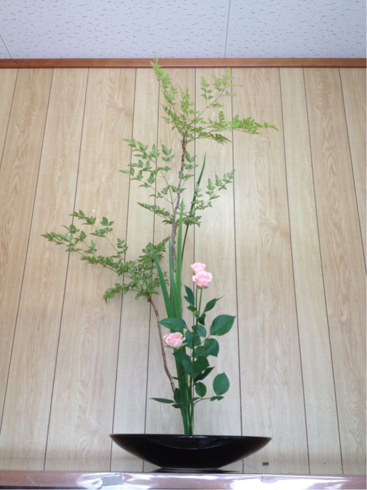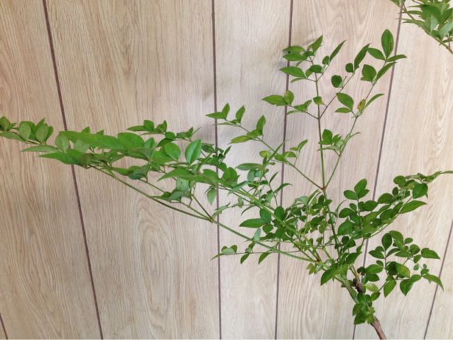 南天、ミニバラ、オクロレウカの三種生けです。
