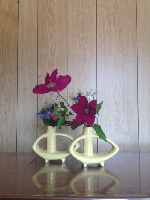 ニゲラ、撫子、テッセンなどを使った自由花です。