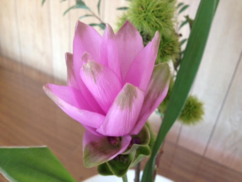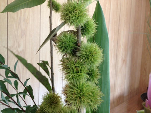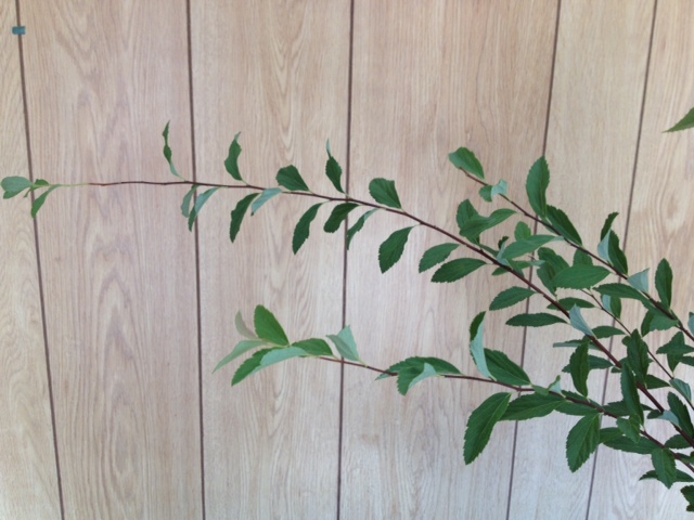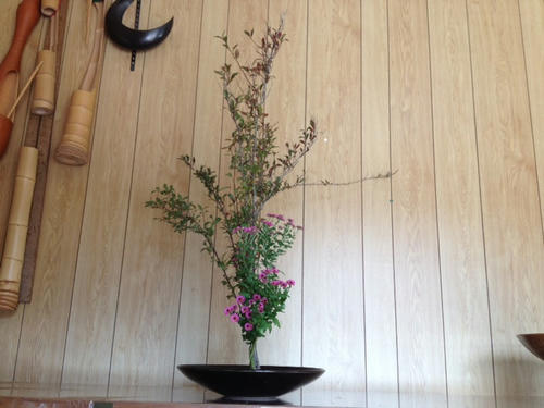 小菊、小手毬の二種生けです。