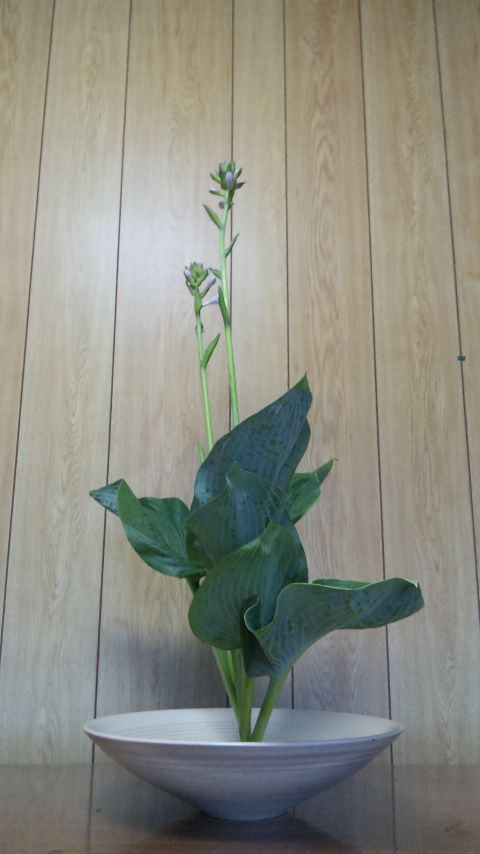 擬宝珠(ギボシ)の一種生けです。