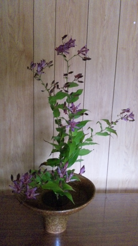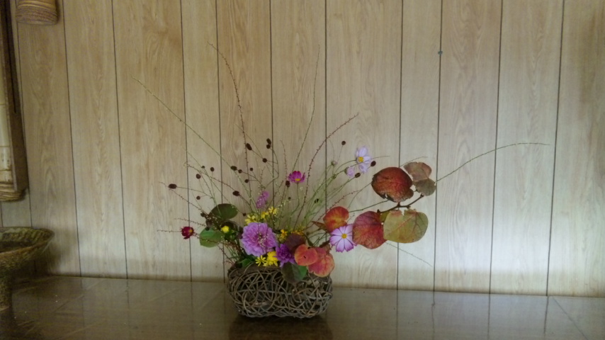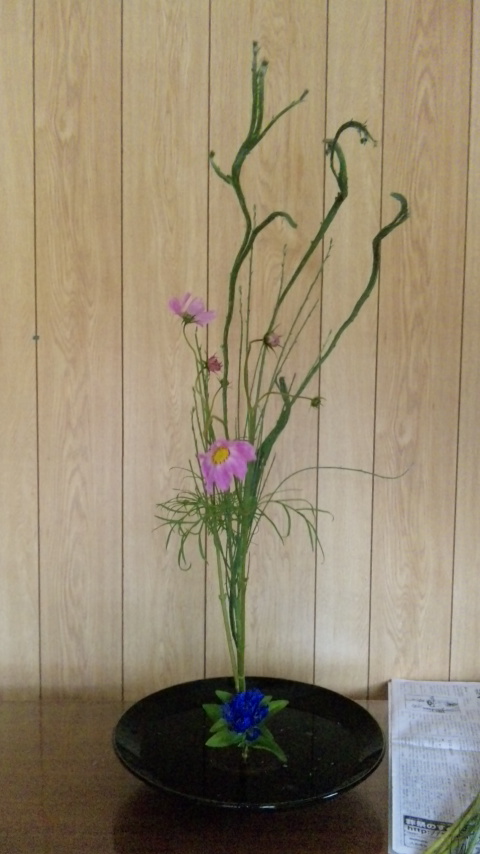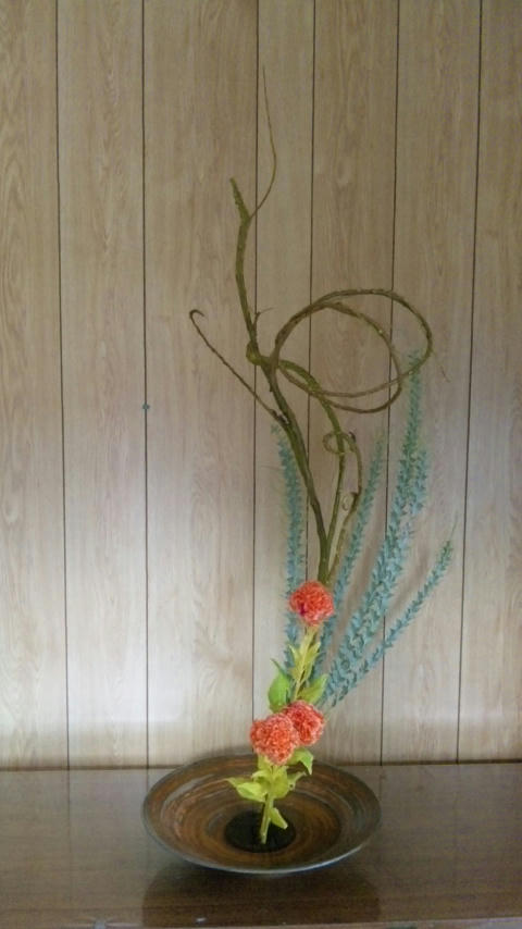 石化柳、三角アカシア、鶏頭の三種生けですw
