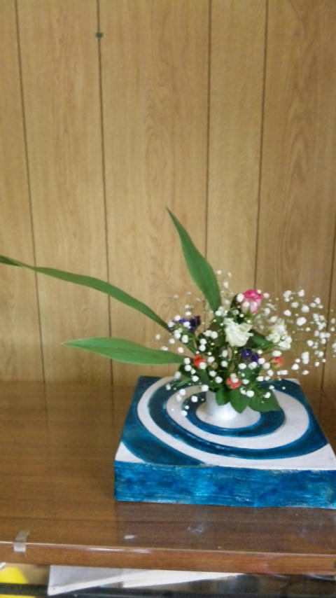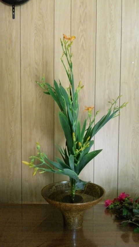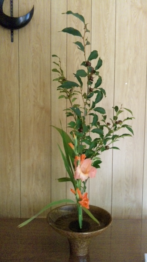 ナツツバキと、グラジオラスと…あとひとつ名前忘れた…の三種生けです。