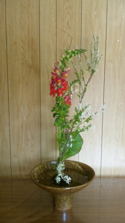 ユキヤナギと、金魚草と、何か(名前忘れた)を使った新風体です。