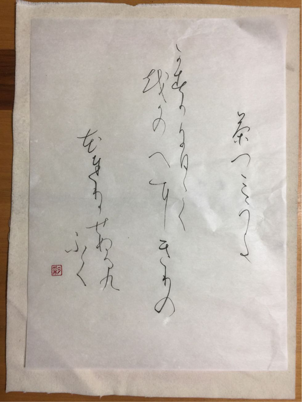 今日のお稽古で書いたものから選んでいただいた一枚。