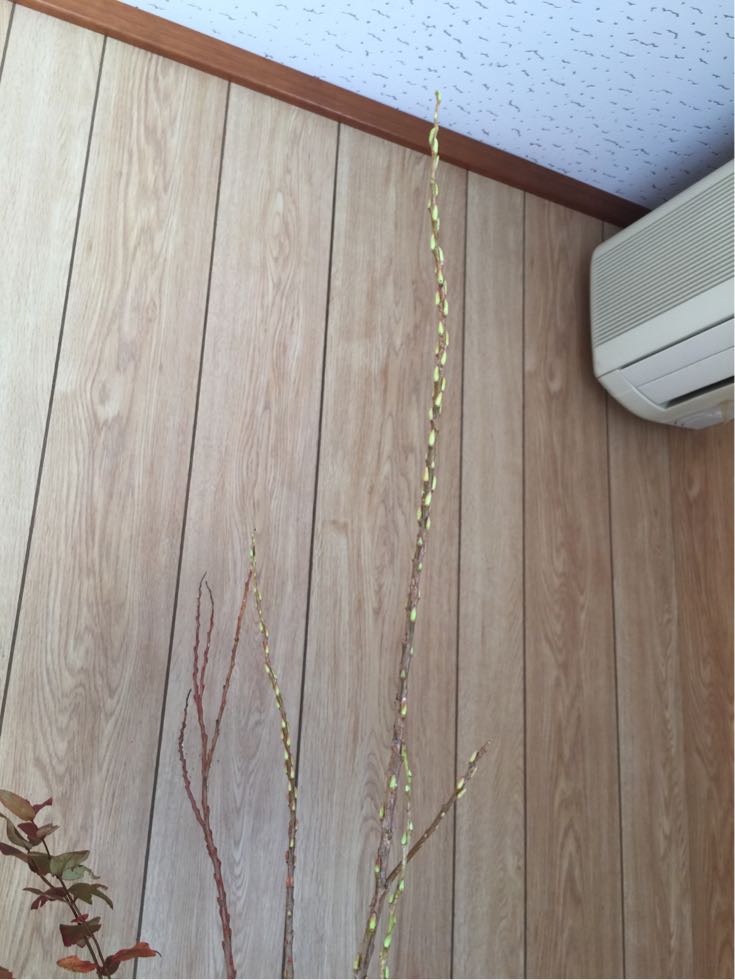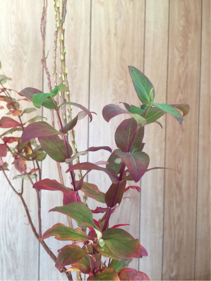 米柳、ヒペリカム、ブバリアの三種生けです。