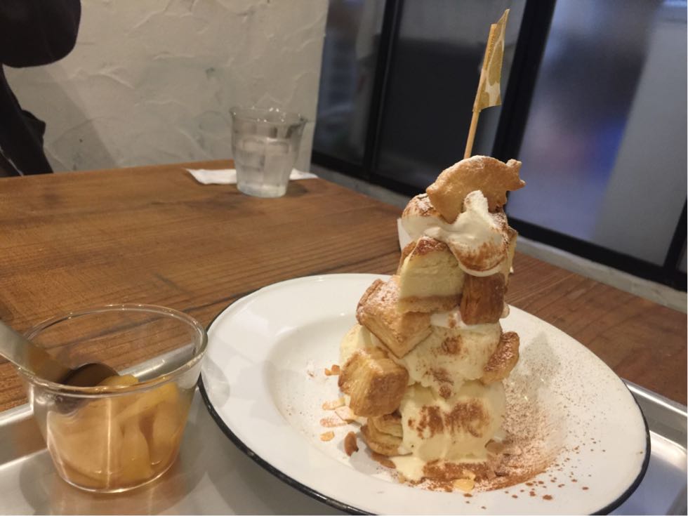 あったかリンゴとバニラアイスのシナモンチーズケーキパフェ。