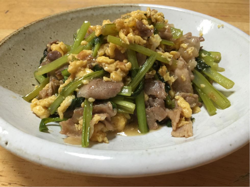 豚肉と小松菜と卵の炒め物。