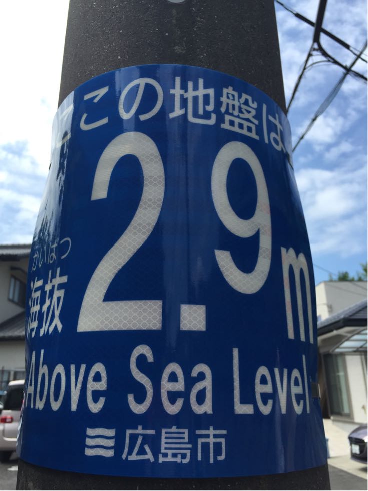 海抜をお知らせする標識。