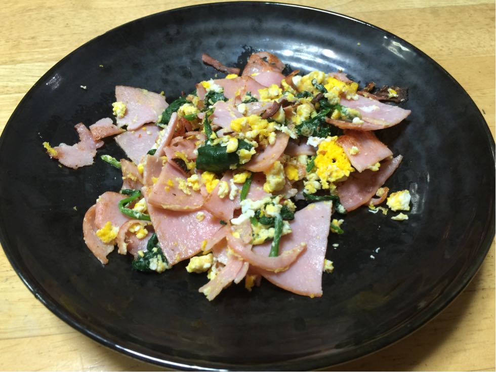 ハムとほうれん草の卵炒め。