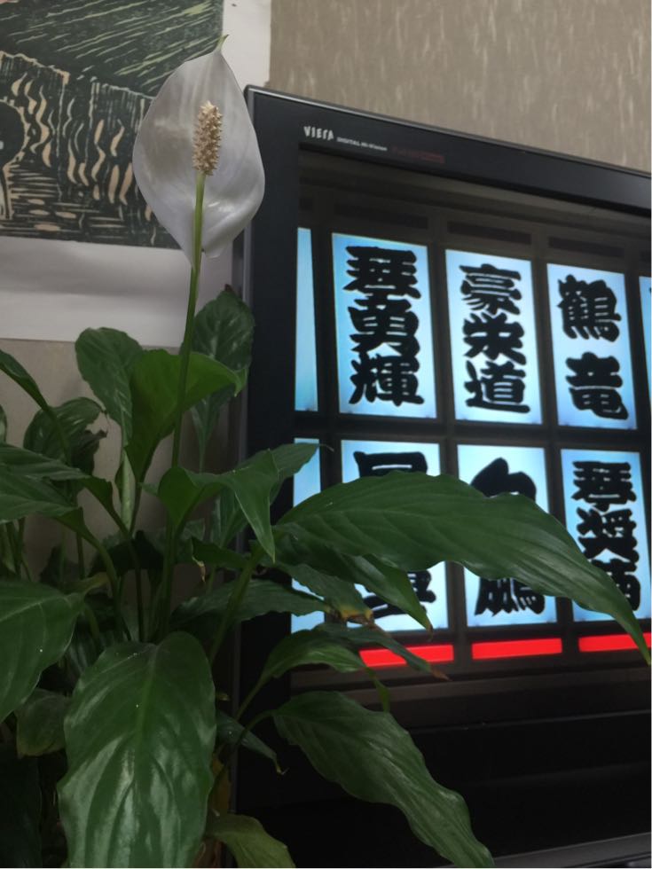 スパティフィラムがようやく咲いたよ。