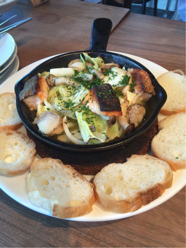 サーモンのちゃんちゃん焼き風アヒージョ。