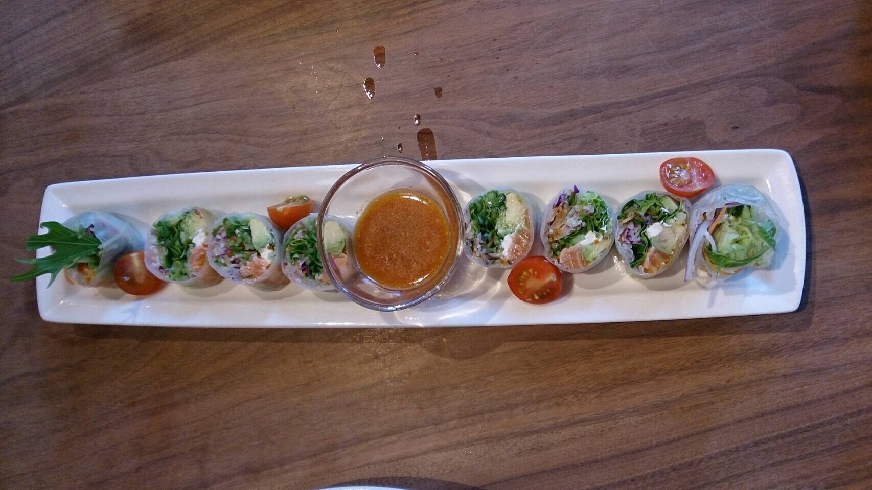 炙りサーモンとアボガド クリームチーズ生春巻き。