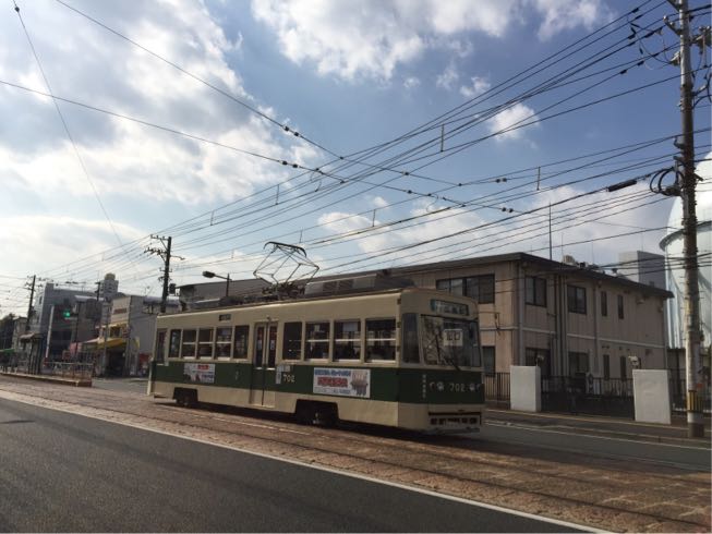 バスを降りててくてく歩いていたら、比治山線を市電が走っているのに会えました。
